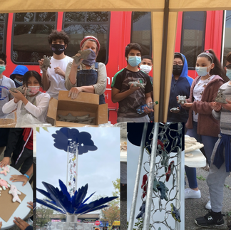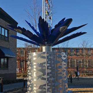New RainKeep named 'Woony' was installed in Olneyville, Rhode Island on the Woonasquatucket Greenway with the help of local children and their Olneyville after-school library program. Allison Newsome and children created brightly glazed stoneware charms of turtles and fish to attach to the RainKeep Rain chains. Woony will water a new pocket park located along the river on the Woony River Greenway bike path.